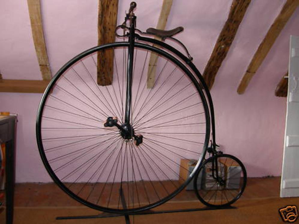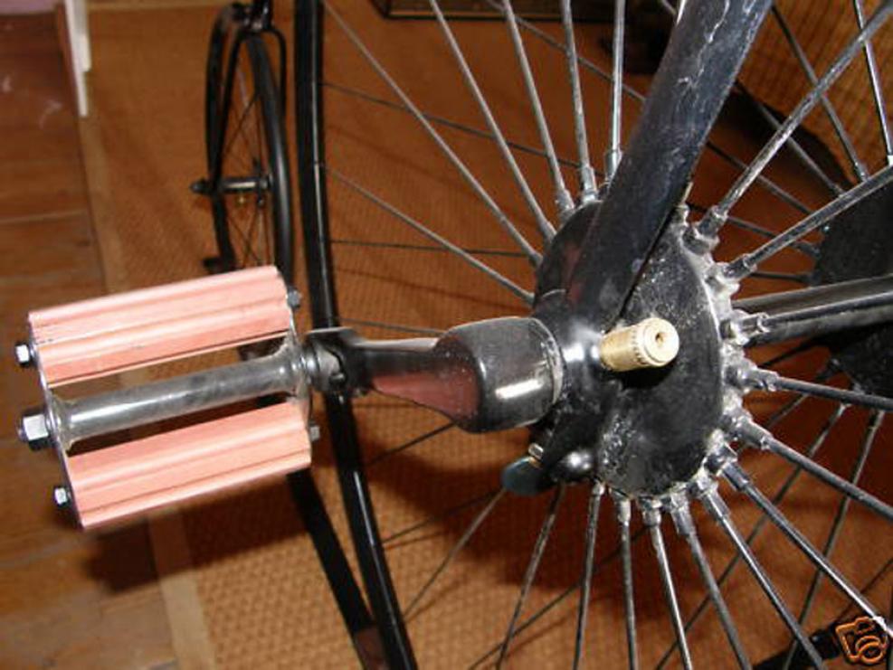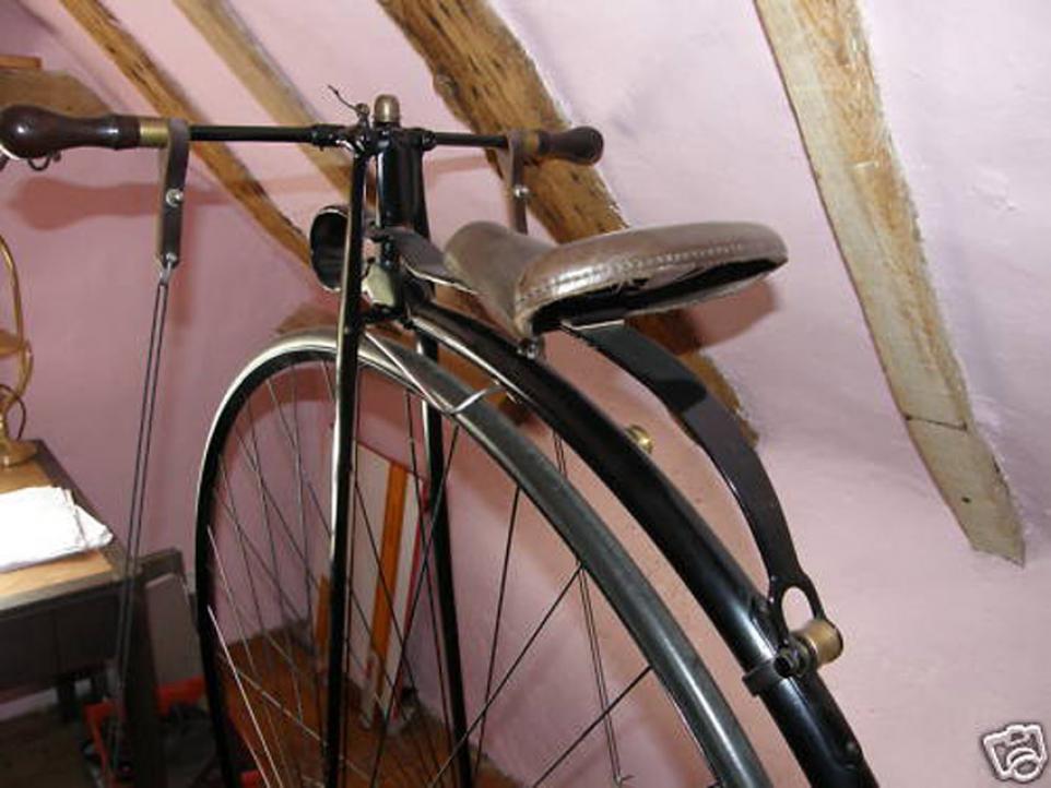 Some time ago this bike was for sale on Ebay. This is why the pictures are quite poor quality, but the bike has some interesting details. Look at the rear wheel roller brake and the large brass oilers on the plain bearings of the front hub.
